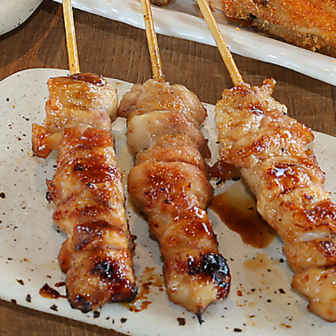 一本一本丁寧に備長炭で焼き上げる焼き鳥は、香ばしさと旨味が凝縮された自慢の逸品です。定番のモモ串や、豚肉で新鮮野菜を巻いた「野菜巻き串」も種類豊富!名物「すきやき串」や、アボカドチーズ、レタス巻きなど、他では味わえないユニークな一本も魅力です。