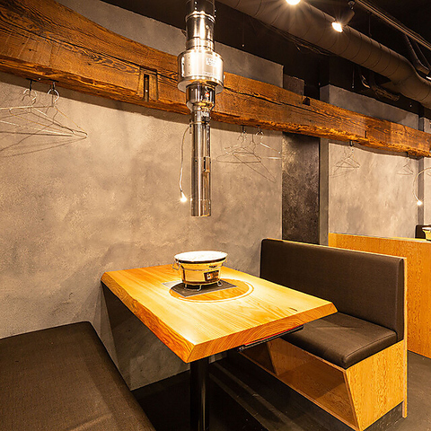 3~5名様向けのテーブル席をご用意しております!テーブル上には七輪が設置されており、お客様自身でお好きな焼肉を楽しむことができます。黒い座席がシックでモダンな雰囲気を演出しています◎ゆったりとした空間で、仲間やご家族と一緒に楽しい時間を過ごすことができます♪