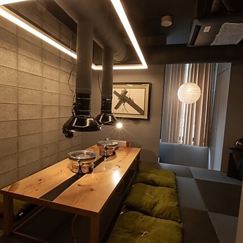 ジャズの心地よい音色が流れるおしゃれな空間が魅力です。和モダンなインテリアが落ち着きを与え、デートや友人との集まりにぴったり!高性能な換気設備が完備されているため、ホルモンの煙を気にせず、安心して料理を楽しむことができます◎