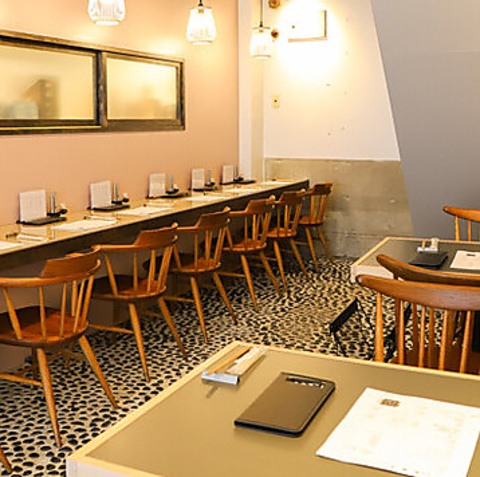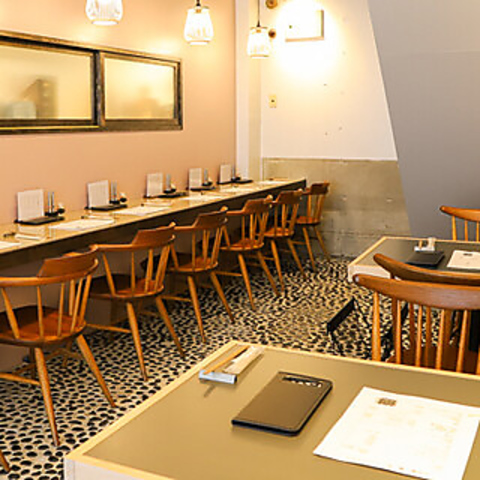 壁に向かうお席は、周囲を気にせず自分だけの時間に浸れる特等席。お一人様でのサク飲みや、横並びで静かに語らうデートに最適です。洗練された空間で、目の前の料理とじっくり向き合う贅沢なひとときを。