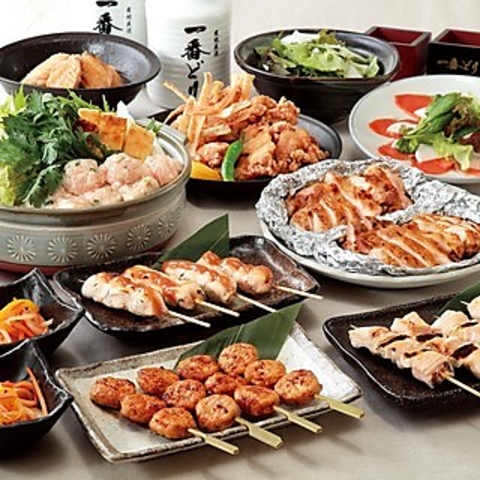 国産鶏料理や焼き鳥をお楽しみいただける2時間飲み放題付きコースは4,200円(税込)~バラエティ豊富に取り揃えております♪厳選された旬の食材を存分にご満喫頂ける大満足コースです!クーポン利用で更にお得に◎焼き鳥の美味しい居酒屋をお探しなら「一番どり」へ♪