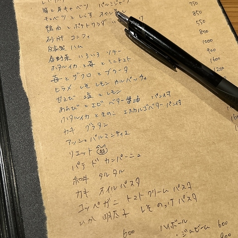 毎日店主が創作!手書きで更新されるアラカルトメニュー!旬の食材を活かした多彩な料理が楽しめます♪