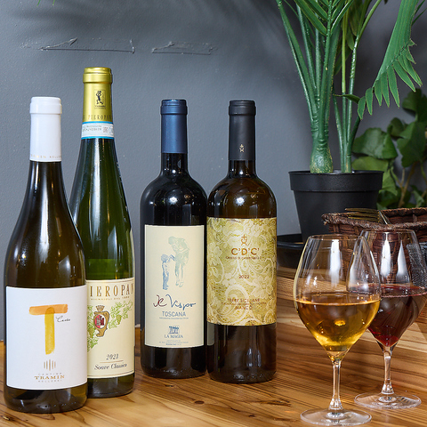 日替わりでグラス8種類、ボトル10種類のワインを取り揃え、シャンパンも加えてトータルで約30種類の豊富なラインアップをご用意しています!店主が自ら厳選した貴重なワインやシャンパンは、料理との相性を考え用意しております♪大切な方との特別な日のお食事にもピッタリです!特別なひとときをぜひご堪能ください◎