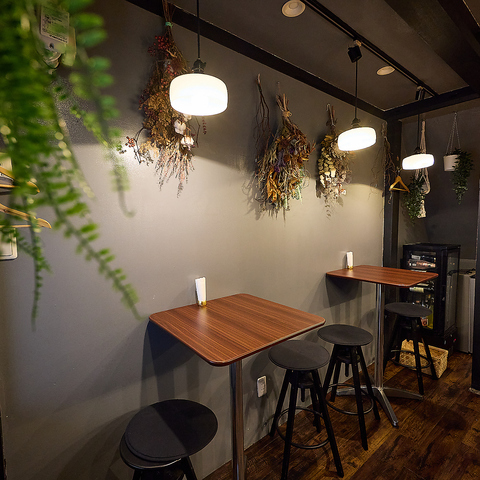 落ち着いた雰囲気の中でゆったりと食事を楽しめる空間です!2名様用のテーブル席が2つあり、カジュアルなデートや友人との食事に最適です♪心地よいインテリアに囲まれたテーブル席で、特別な料理やお酒を味わいながら、リラックスしたひとときをお過ごしください。