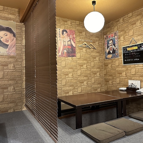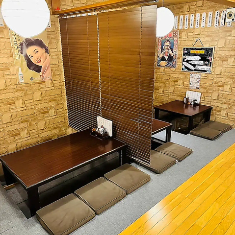 【ゆったり昭和レトロな空間◎】ご家族様やご友人、同僚などちょっとした宴会に気軽に使える4名掛けと2名掛けのほりごたつテーブル席を計4卓ご用意!テーブルを結合すれば最大8名様まで着席することも可能です◎90年代の雰囲気漂う昭和のレトロな空間でごゆったりとお食事をお楽しみ頂けます。