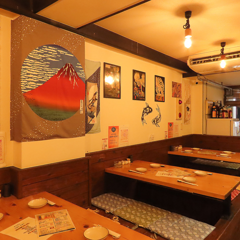 明るい光に照らされた店内にはゆったり座れる掘りごたつ席があり足を伸ばして寛げます。会社帰りのサク飲みや女子会、接待にも◎