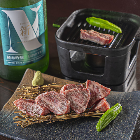 肉問屋から直接仕入れた極上A5ランクの近江牛を、熱々の鉄鋳物プレートで自分好みに焼き上げる贅沢な一皿。とろける脂と赤身の旨みが絶妙にバランスし、焼き加減によって変わる食感と風味を楽しめます。焼きたてを山葵と粗塩で味わえば、肉本来の旨さが際立つ逸品です。