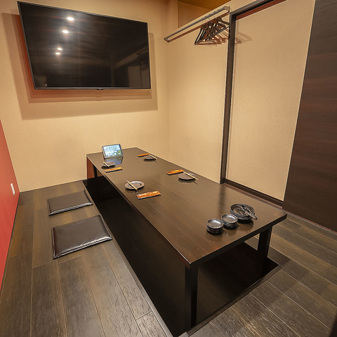 【少人数から団体様までOK】普段は仕切りのある完全個室ですが皆様に合わせてカスタマイズすることが出来ます。開放後は30名様程ご利用が可能です。またモニターも完備しており、結婚式の二次会で映像をながしたり、スポーツ観戦も行え様々なシーンでご利用ができます!