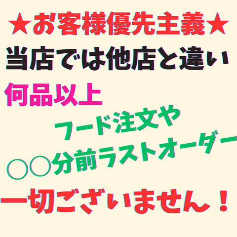 『当店の自慢』”注文制限””ラストオーダー制限”なし