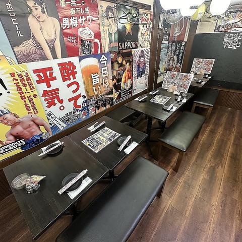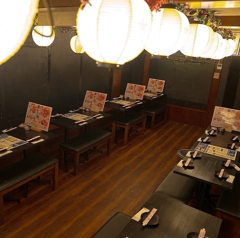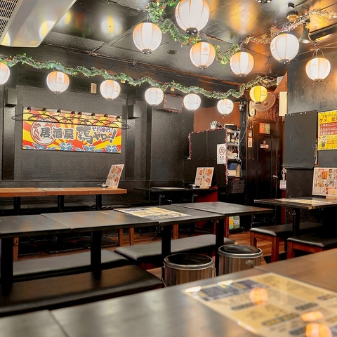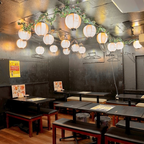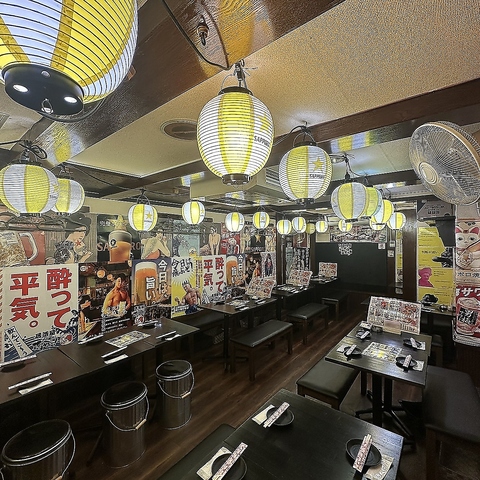 【大衆居酒屋】お祭り気分になれると好評の内装です!自慢の居酒屋料理と激安ドリンク何杯でもゆったり堪能出来るように、テーブル席メインのレイアウト様々に、多種多様なお席をご用意!名物のでか唐揚げ(1個199円)は絶対食べてくれトリー!