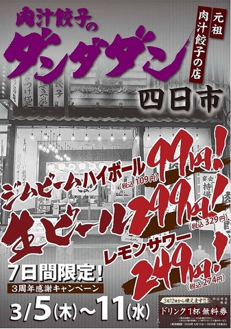 | 店名 | 肉汁餃子のダンダダン 四日市店 |
