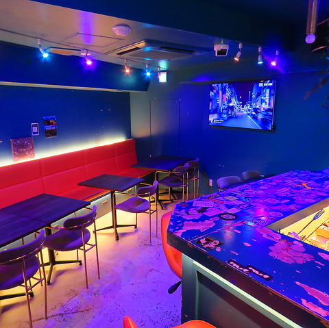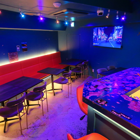【2F:貸切パーティーやイベント利用に最適】1階とは雰囲気の異なる2階フロアは、個室としてもご利用いただけます。カラオケやモニター、DJ機材などの設備も充実しているので、貸切でのご宴会やパーティーにもぴったり。プランや人数、時間など柔軟に対応いたしますので、ぜひお気軽にお問合せください。