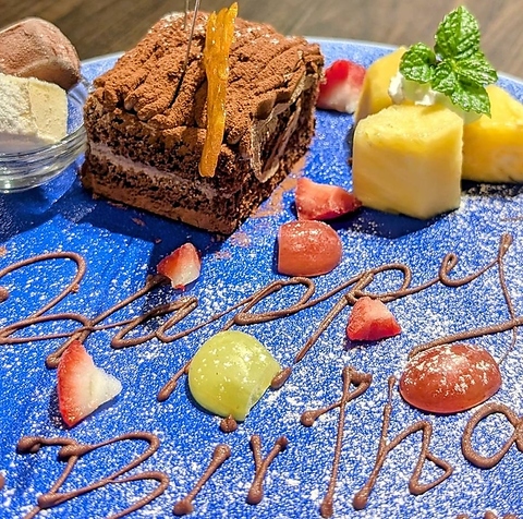 前日までのご予約でデザートプレート1800円。サプライズ対応可。名前入れ可能です。