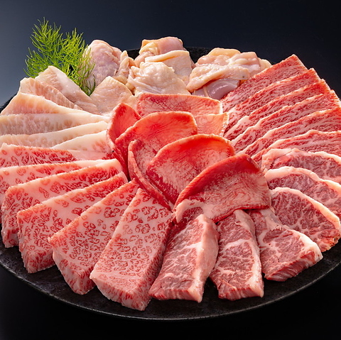 お肉はもちろん海鮮やお野菜の新鮮さににこだわり。当店自慢のお勧め3種盛り合わせ、その日の厳選肉5種盛り合わせなどお得なセットをご用意しております。