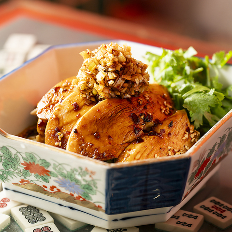 低温調理で仕上げた鶏むね肉はしっとりやわらかい。特製ダレが絡み、ひと口ごとに旨みと辛味が広がる一品!