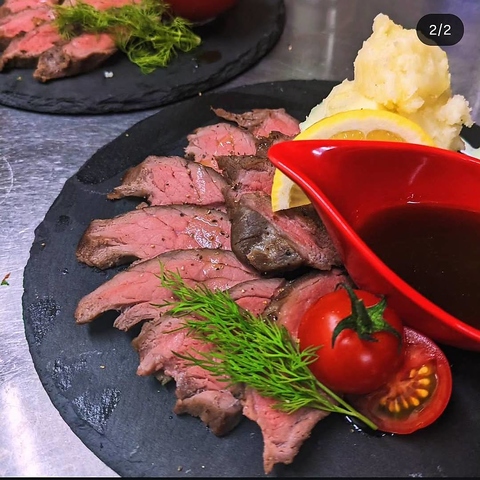 当店イチオシ!口の中で広がるお肉の旨みとジューシーな肉汁がたまらない自家製ローストビーフ!一度食べればやみつきになること間違いなし♪