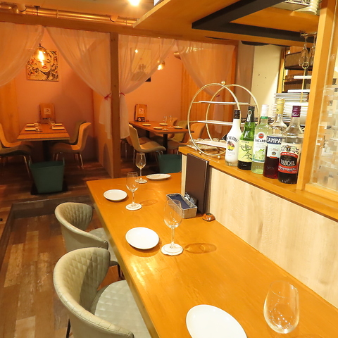 木目と淡い色を基調とした店内はカーテンで仕切られた個室もございます。照明も落ち着いており、盛り付けがお洒落な美味しい料理が食べられますので、デートでのご利用にもピッタリな空間となっております。特別な日に素敵な思い出をぜひ当店で・・・♪