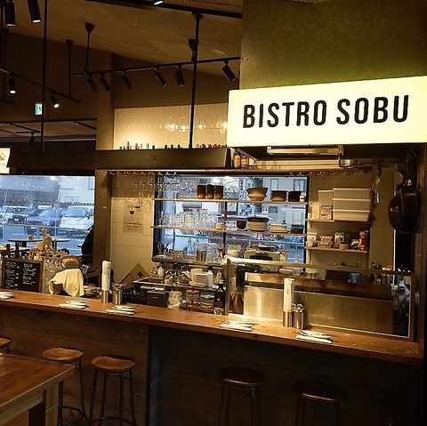 | カウンター | 1名様×8 | BISTRO SOBUは、木の温もりが感じられるカジュアルな内装が魅力。オープンキッチンのカウンター席では、料理のパフォーマンスを楽しみながら、居心地の良いひとときをお過ごしいただけます。お一人様やサク飲みも大歓迎です! |