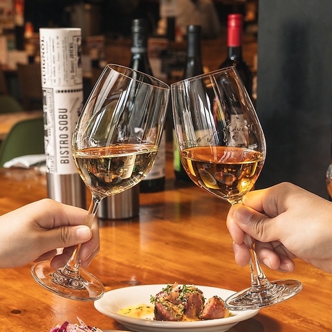 BISTRO SOBUのオススメは厳選し仕入れている種類豊富なナチュールワインの数々!その日ご提供しているナチュールワインは、店内の黒板に掲示されていますので要チェックです!ソフトドリンクも自家製のレモンスカッシュやクラフトジンジャエール等、多彩な品揃え。気分に合わせてお好みの一杯をお楽しみください。