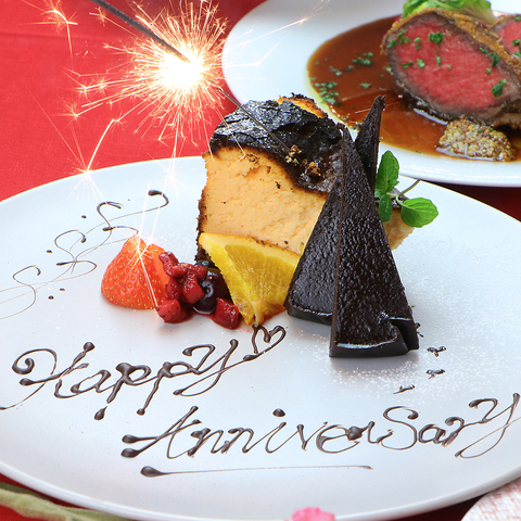 ボナパルト☆バスチーなど自家製ケーキを使用したメッセージつきデザートプレートをご用意!単品は1000円でご用意可能です!※要予約