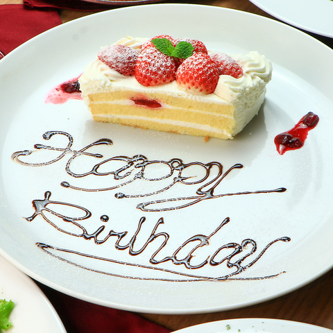 自家製ホールケーキを使用したメッセージつきデザートプレートをご用意!単品は1000円でご用意可能です!※要予約