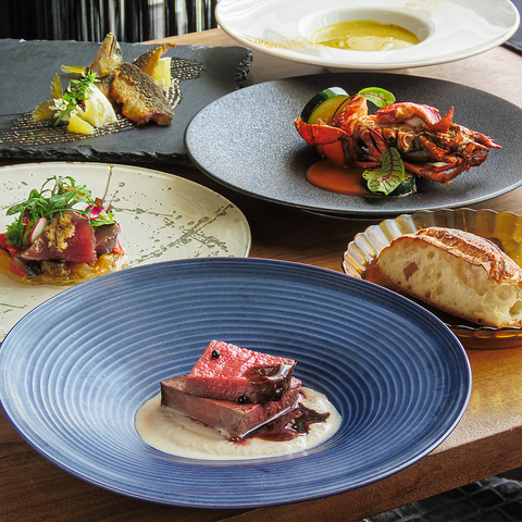フランス料理用語で「お楽しみ」という意味をもつ前菜の前に出てくるアミューズをはじめとし、旬の食材を使用した季節を感じるオードブル、厳選食材を使用しソースまでこだわりぬいたお肉料理やお魚料理にパスタなどを贅沢に堪能できるイチオシのコース。お祝いや記念日など特別な日にもぜひご利用ください。