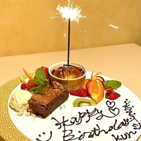 当店では、お誕生日や記念日にぴったりなメッセージ付きデザートプレートをご用意しております。手打ちパスタや厳選肉料理と共に、特別なひとときを彩る甘美なデザートで、大切な人へのサプライズを演出します。美しい盛り付けと心のこもったメッセージで、思い出に残る素敵な時間をお過ごしください。事前のご予約をお待ちしております。