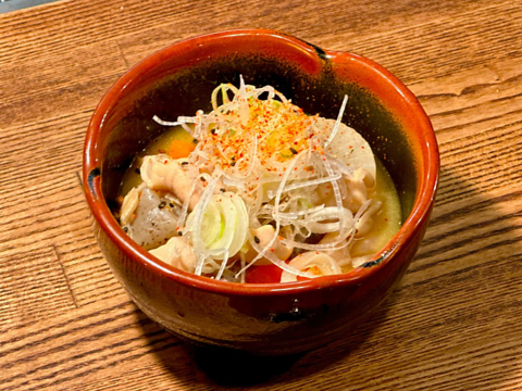 白味噌と赤味噌をブレンドした味わい深いもつ煮込みです。もつの下処理から丁寧に行っていますので、臭みも一切なく美味しくお召し上がりいただけます。