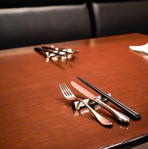 グループ利用に嬉しいテーブル席がございます。落ち着いたインテリアでまとめており、心地よい空間で食事を楽しむことができます。