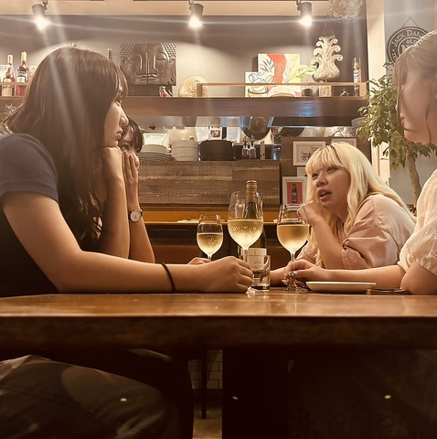 隠れ家ようなゆったりとした空間でお食事をお楽しみください♪シャンパンやカクテルなども幅広くご用意していますので、お仕事終わりにもぜひご利用ください!