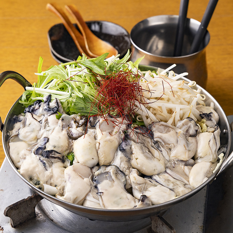 【特選牡蠣鍋コース】他にはないオリジナル♪豪華牡蠣鍋、〆の雑炊など全5品★2時間飲み放題付