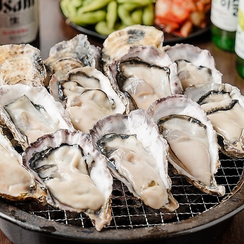 牡蠣好きさん必見!当店自慢の牡蠣を焼きと蒸しの2つのスタイルで楽しめる食べ放題コースが新登場しました!牡蠣の豊潤な旨味にお酒が進むこと間違いなし♪枝豆・白菜キムチなど、気軽につまめる一品も付いています。※+1,000円で飲み放題を追加できます。