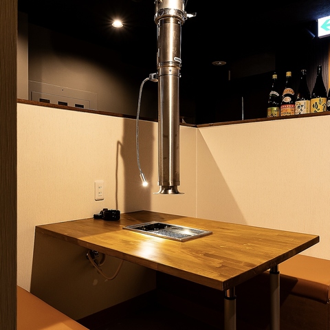 【テーブル席】個室・半個室をご用意しておりますので、カジュアル空間でゆっくりと美味しいお肉を楽しみたい方や接待会食などプライベートな場にも様々な用途でご利用いただけます。テーブルを連結させて最大10名まで座ることが可能です。