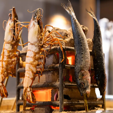 当店ではカウンター席前にある囲炉裏で焼き物を調理!目の前で焼き上げられるLIVE感がお楽しみ頂けます♪
