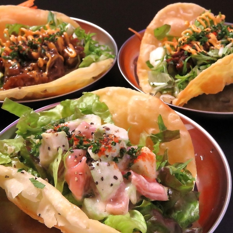 ≪ランチ限定オススメのメニュー≫手作りPizza 500円(税込)~。モチモチなピザ生地とチーズはもちろん相性抜群。≪ディナー限定オススメのメニュー≫チリタコス 280円(税込)。トルティーヤに具材と、ソースなどたっぷりと巻いて食べるボリューミーなメキシコのソウルフード。また2品とも生地から手作りをしております。ぜひご賞味ください。