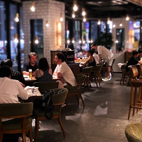 解放感あるオープンキッチン♪海外の精肉店を模した白タイルの店内◎テーブル・カウンター・バーカウンターと人数やシーンによって選べるお席をご用意しております。団体でのご利用の際にはレイアウトなどのご相談にも応じます♪