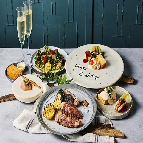 前菜3品から始まり、群馬県産のくちどけ加藤ポークのグリルをメインとしたちょうどよいボリューム感のランチコースです。くちどけ加藤ポークはお肉の脂の融点が体温に近く、口に入れたときのとろける食感が特徴の1品です!自家製のフォカッチャとともにお楽しみください!