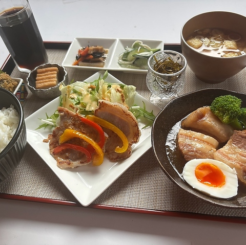 ランチタイムは全てのメニューにサラダ・小鉢・味噌汁・ごはん付!出来立て熱々をご用意◎