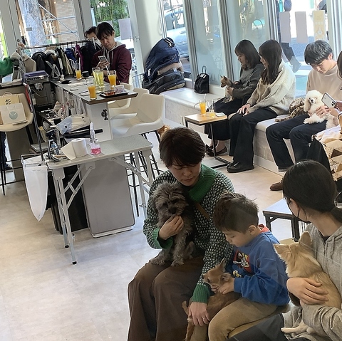 店内にはたくさんのわんちゃんがいます☆わんちゃん連れのお客様も、わんちゃんが好きで触れ合いたい方も、大歓迎です◎デートや女子会、ご家族でのご利用も大歓迎!誰でも気軽に遊びにこられる、わんちゃんと人が一緒に楽しめる、ワンちゃんとの素敵な暮らしをトータルサポートするお店です!
