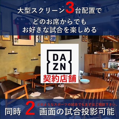 店内は大型テレビを3台完備!DAZN契約店舗!今日見たい試合が見れます、2画面で別試合もチェックできます