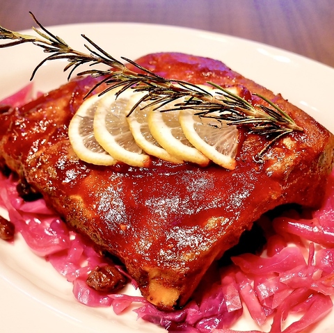 ブルックリンラガーと特性スパイスで一晩マリネした360gの圧巻ボリュームのバックリブを2時間じっくり火入れしフォークを入れた瞬間崩れるほどホロホロに仕上げました。