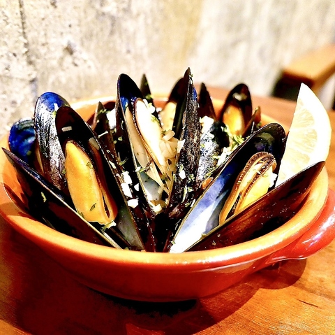 旨味の強いチリ産のムール貝を使用、白ワイン蒸しにし旨味を閉じ込め、ガーリックバターソースで仕上げました。