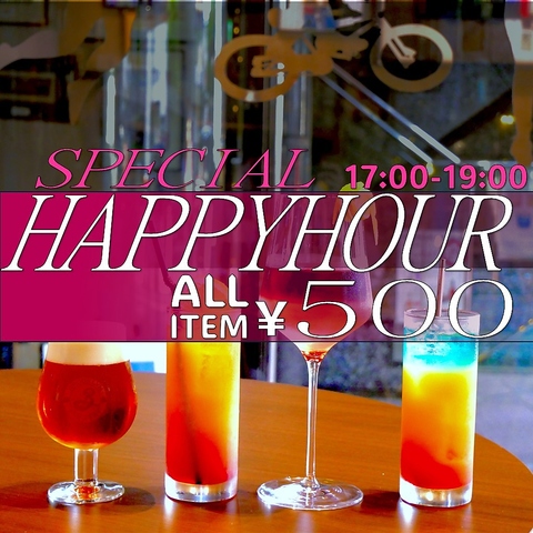 17:00-19:00の間、ワンコインハッピーアワーを毎日開催中元ホテルバーテンダー監修のカクテルやセレクトアイテム、1日1杯限定のデイリーウイスキーやジャパニーズジン等イカしたアイテムをそろえています。