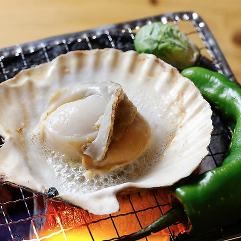 七輪の上でパチパチと音を立てながら焼き上がるホタテは、磯の香りが食欲をそそります。焼き上がった身はぷりぷりとしていて、噛むほどに濃厚なエキスがあふれ出す贅沢な味わい。冷えたビールや日本酒との相性も抜群です。