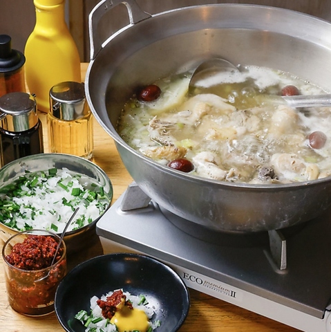 海老しゃぶや本格タッカンマリ、焼きタンしゃぶなどの鍋料理をはじめ、七輪で楽しむ焼物など幅広くご提供しております。お得な飲み放題付プランもご用意しているので、幹事様も安心です。ビールや焼酎・マッコリなどドリンクも豊富に取り揃え◎店舗貸切も承っておりますので、団体利用も歓迎!お気軽にご相談ください。