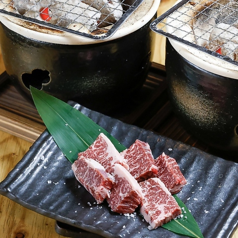 【七輪で豪快に炭火焼き!!】遠赤外線の特長は焼く材料の表面だけでなく、中の方へ熱が入っていくため強い火で焼いても表面が、焦げずに早く焼けるのです。また短時間で焼け、材料のうま味や水分を逃がさず美味しく柔らかく焼く事が出来ます。さらに炎が出ないため黒こげになりにくく、風味を出し、苦味がでません!