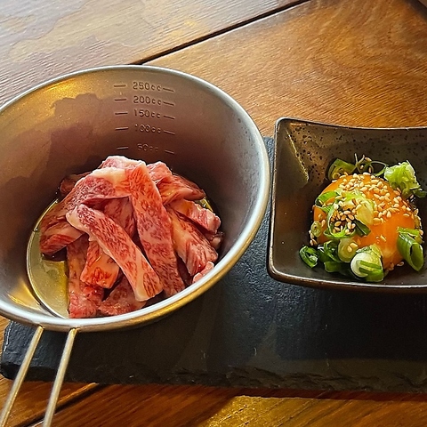 極薄カットの和牛をサッと炙り、ネギまみれ×卵黄ダレでとろける幸せ!「うわ、これ好き…」と思わず声が出る新名物。あっさりなのに記憶に残る、女子会・デートでのリピート率No.1。超越極シリーズの新エースがここに誕生!1枚からのご注文です。