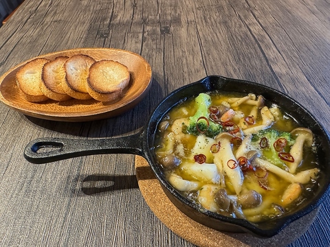 ピザ生地にジェノベーゼソースを塗り、トマトやアンチョビ、マッシュルームを乗せて焼きました!
