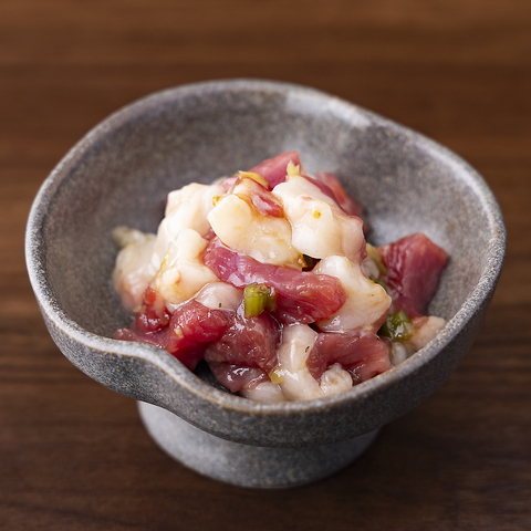 新鮮な馬肉を贅沢に三種盛り合わせです♪やわらかいアカミ、馬にしかない希少部位フタエゴ、旨味がありとろける食感のタテガミなど様々な部位の刺しをご用意しております。甘めの醤油と生姜でお召し上がりください。