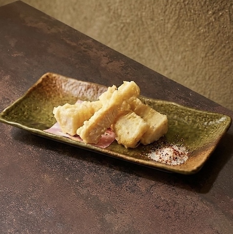 豚足をトロトロになるまで煮込み、それを竜田揚げに!ピリ辛の特製ソースにくぐらせた一品が登場です!お酒のアテにぴったりな、ジューシーで香ばしい味わいが魅力です♪豚足の柔らかさと、竜田揚げのサクサク感が絶妙にマッチしています!一度食べたらやみつきになること間違いなし!